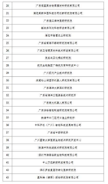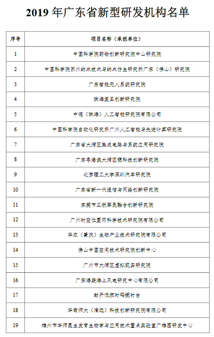 廣東省科學技術(shù)廳關于2019年廣東省新型研發(fā)機構(gòu)名單的公示