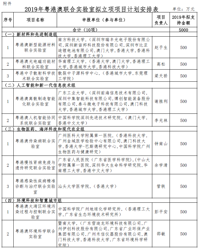 1.2019年粵港澳聯合實驗室擬立項項目計劃安排表