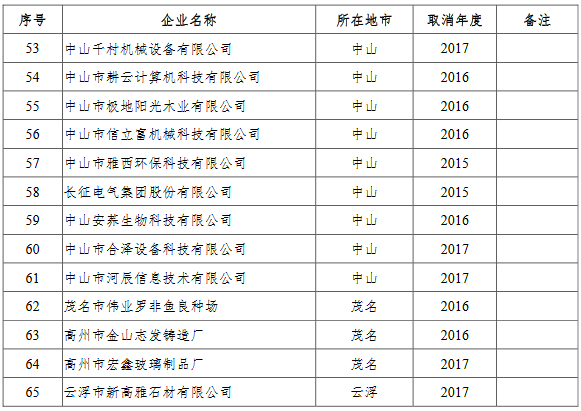 廣東省科學技術廳關于取消65家高新技術企業培育庫入庫企業資格的通知
