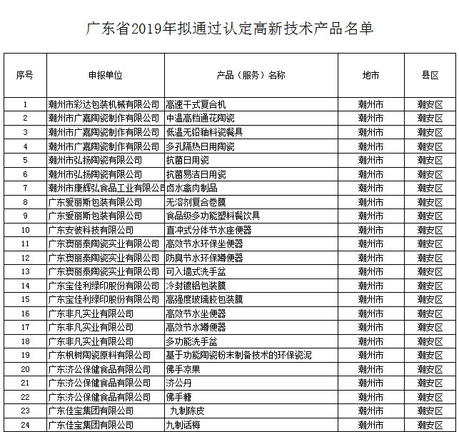 【高品名單】關于公示廣東省2019年擬通過認定高新技術產品名單的通知